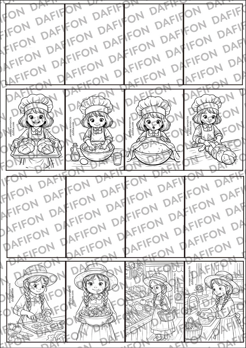 איורים תמונות ליצירת רצף לסיפור.הילדות גוזרות את המשבצות מדביקות לפי סדר רצף הגיוני של הסיפור.