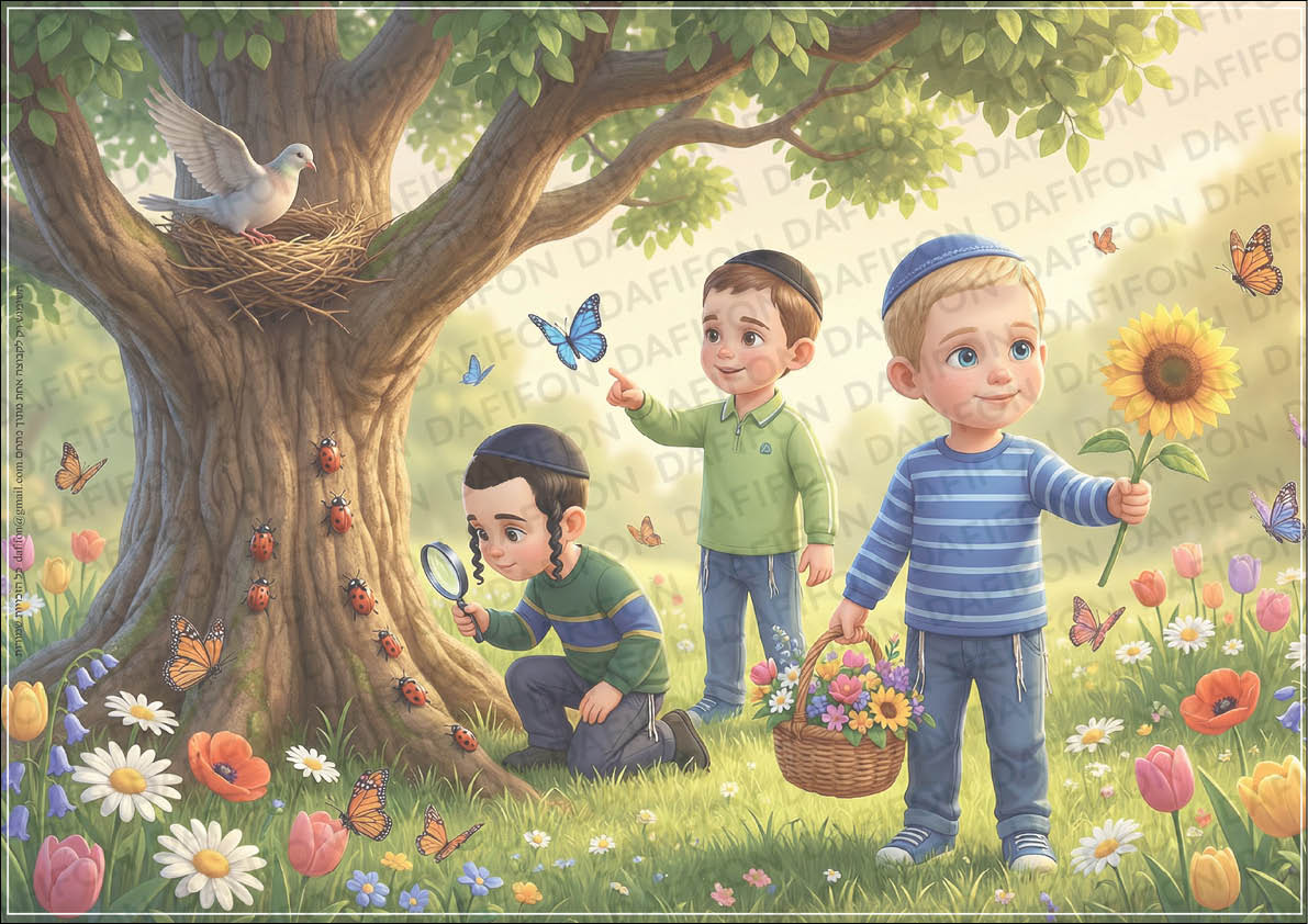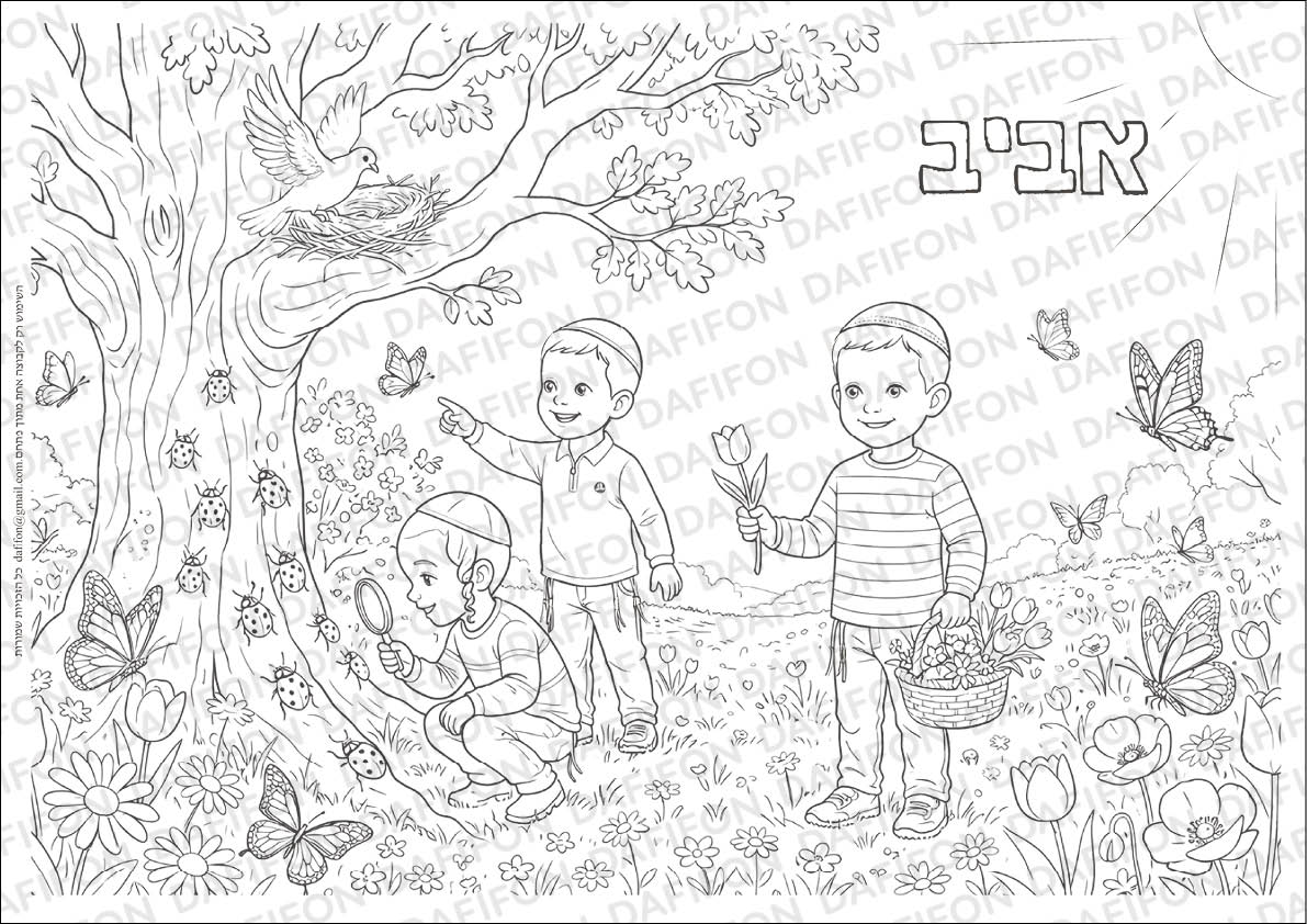 מדרש תמונה אביב + דף יצירה תואם מתנה בנים